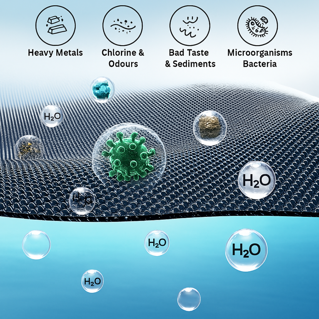 Our advanced filtration system uses natural coconut shell activated carbon combined with additional filtration layers to deliver cleaner, healthier water straight from your tap. Each layer is designed to target specific contaminants, ensuring pure and great tasting water for your household.